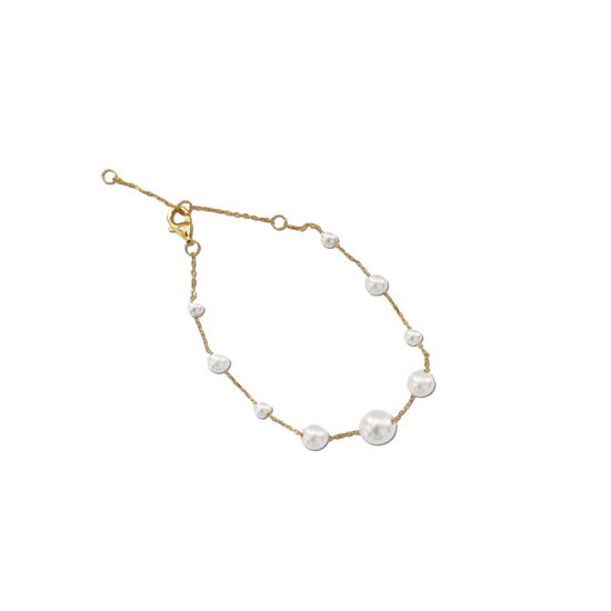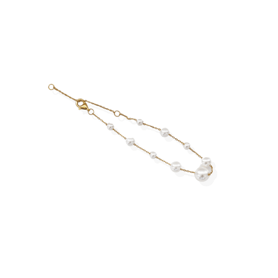 This stunning Pearl Bracelet is the perfect blend of elegance and versatility. It is crafted with 18K gold over 925 sterling silver and features 9 beautiful pearls. At 16 cm in length with a 4 cm extender, it can easily adjust to fit different wrist sizes, ensuring a comfortable and secure fit.