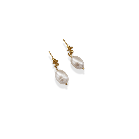 Featuring unique cultured pearls with an irregular shape that showcases their natural elegance, these pearl drop earrings boast a 19 mm drop length with pearls approximately 10 mm in size.